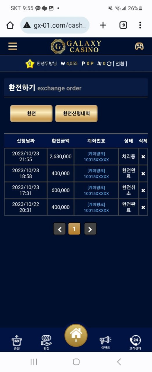 코티비씨 무료티비사이트 배너에 홍보하고 있어서 이용해봤는데 초반에 소액은 환전 잘나오다가 갑자기 100이상 따니까 현지사정으로 인해 은행업무 마비됐다면서 환전 1시간이상 미루고 아이디 차단해서 로그인이 안되네요 배팅은 카지노 스포츠 이용했습니다 증거사진은 환전신청 내역이랑 고객센터 글남긴거 로그인 안되는거 남깁니다