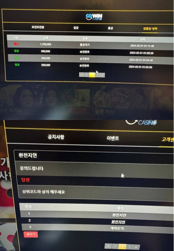 고윈 김토박사 0 2024.02.01 09:39 사이트명 : 고윈 사이트주소 : http://gw-1001.com 피해날짜 : 2/1 피해금액 : 170만원 계좌정보 : 1 개 x신 사이트 이용중지