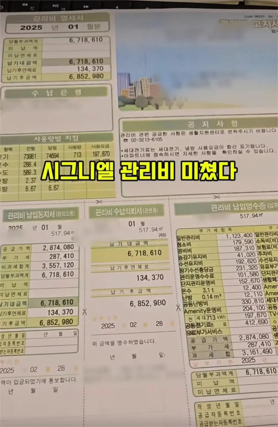 156평 시그니엘 관리비