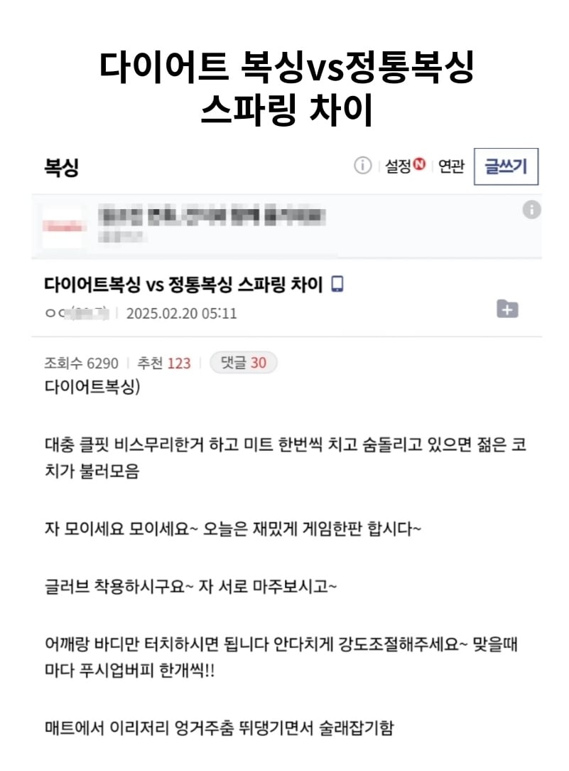 디시인이 알려주는 다이어트 복싱 정통복싱 스파링 차이