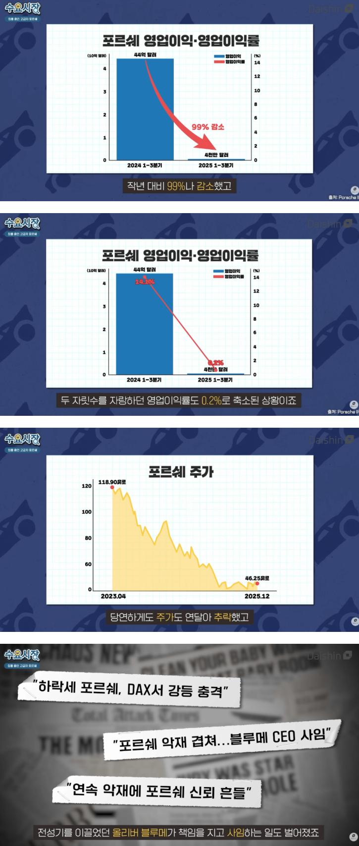 전기차 투자했다가 1년만에 이익 99% 감소한 포르쉐