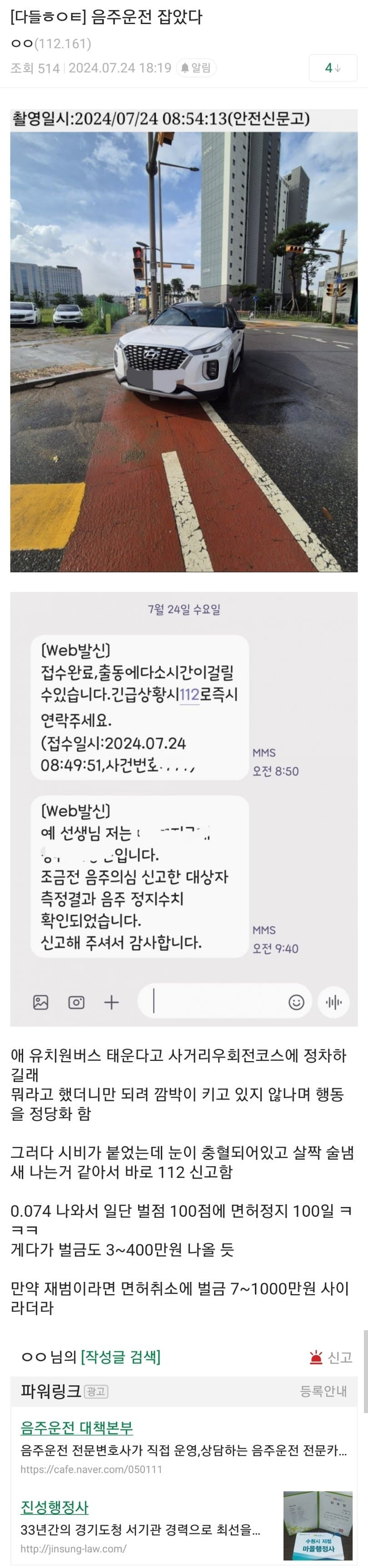 음주운전 제보로 포상금 받은 썰