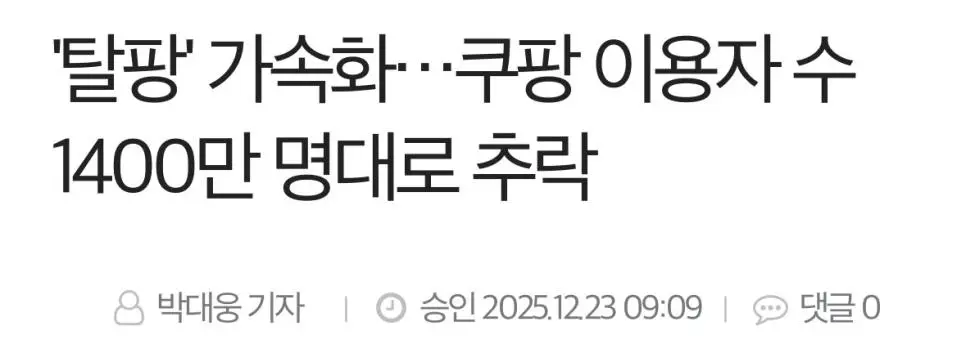 '탈팡' 가속화,쿠팡 이용자 수 1400만 명대로 추락