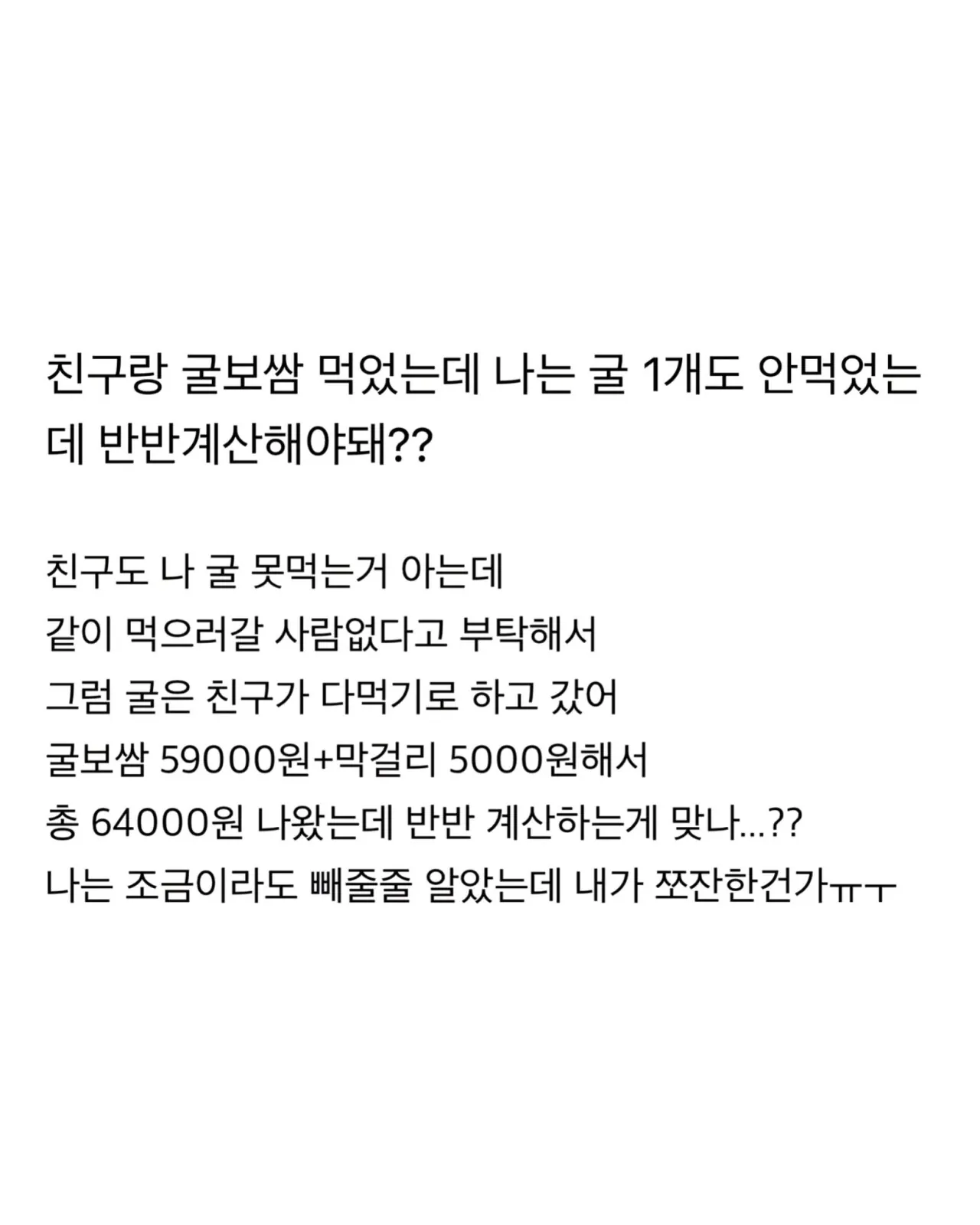 굴보쌈 굴 안 먹었는데 반반 계산해야 돼?