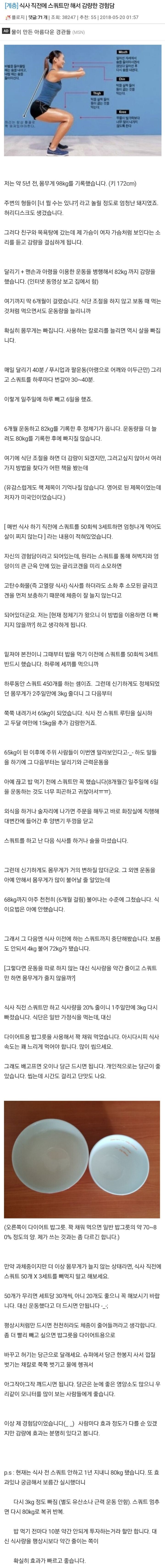 식사 직전에 스쿼트만 해서 감량한 경험담