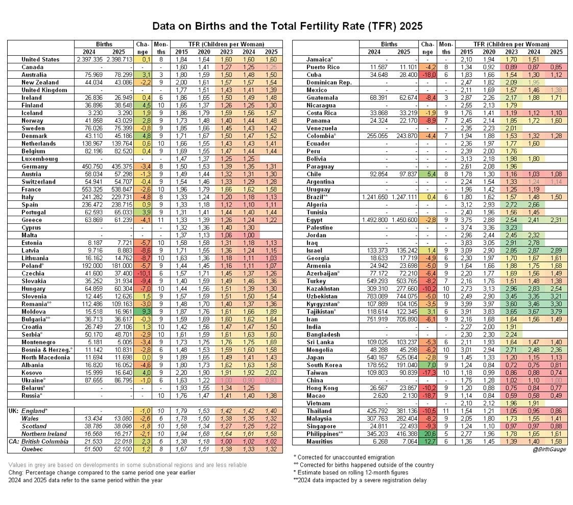 2025 전세계 출산율 전망